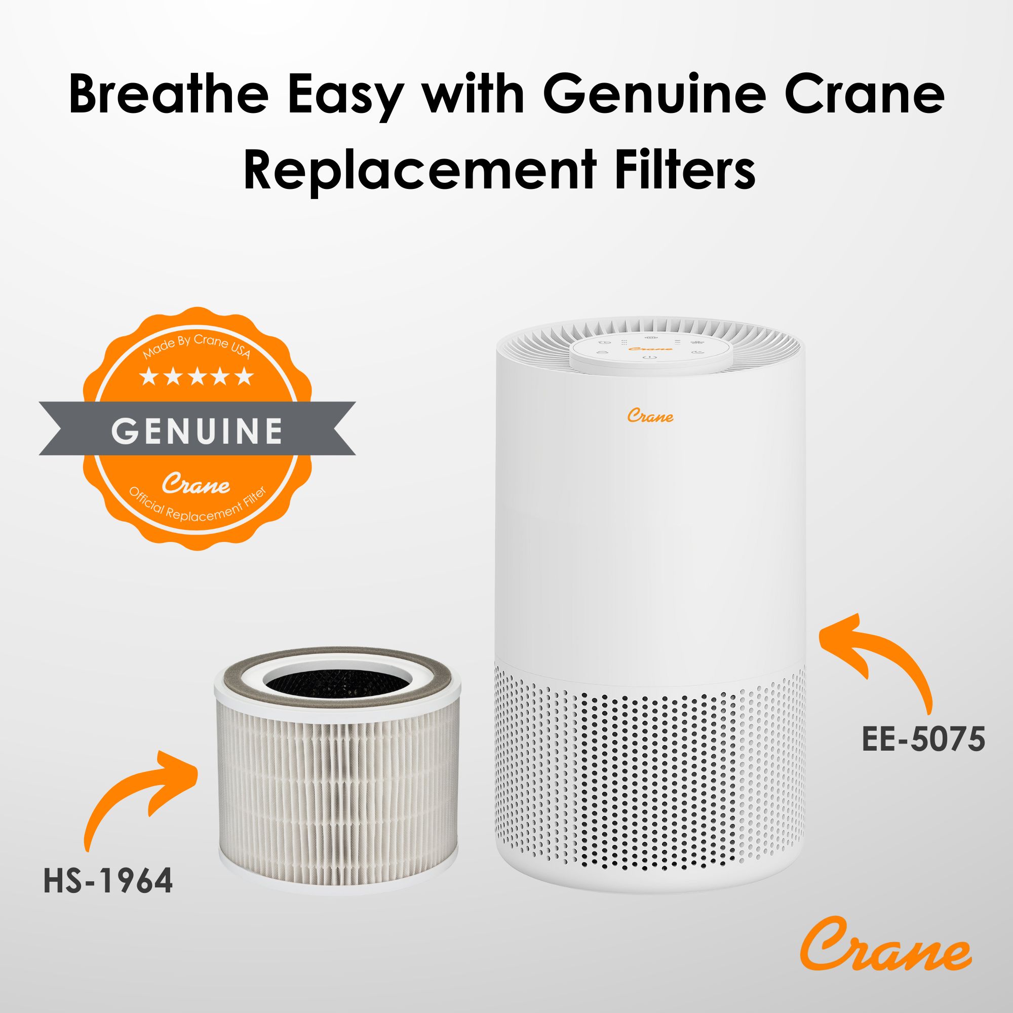 The HS-1964 HEPA Filter is a true-HEPA replacement filter for the EE-5075 Premium Air Purifier from Crane. It contains a complete HEPA, carbon, photocatalyst, and particle filter set that captures 99% of airborne dust and particles as small as 0.3 microns. Its advanced filtration also helps eliminate household odors and other harmful fumes.