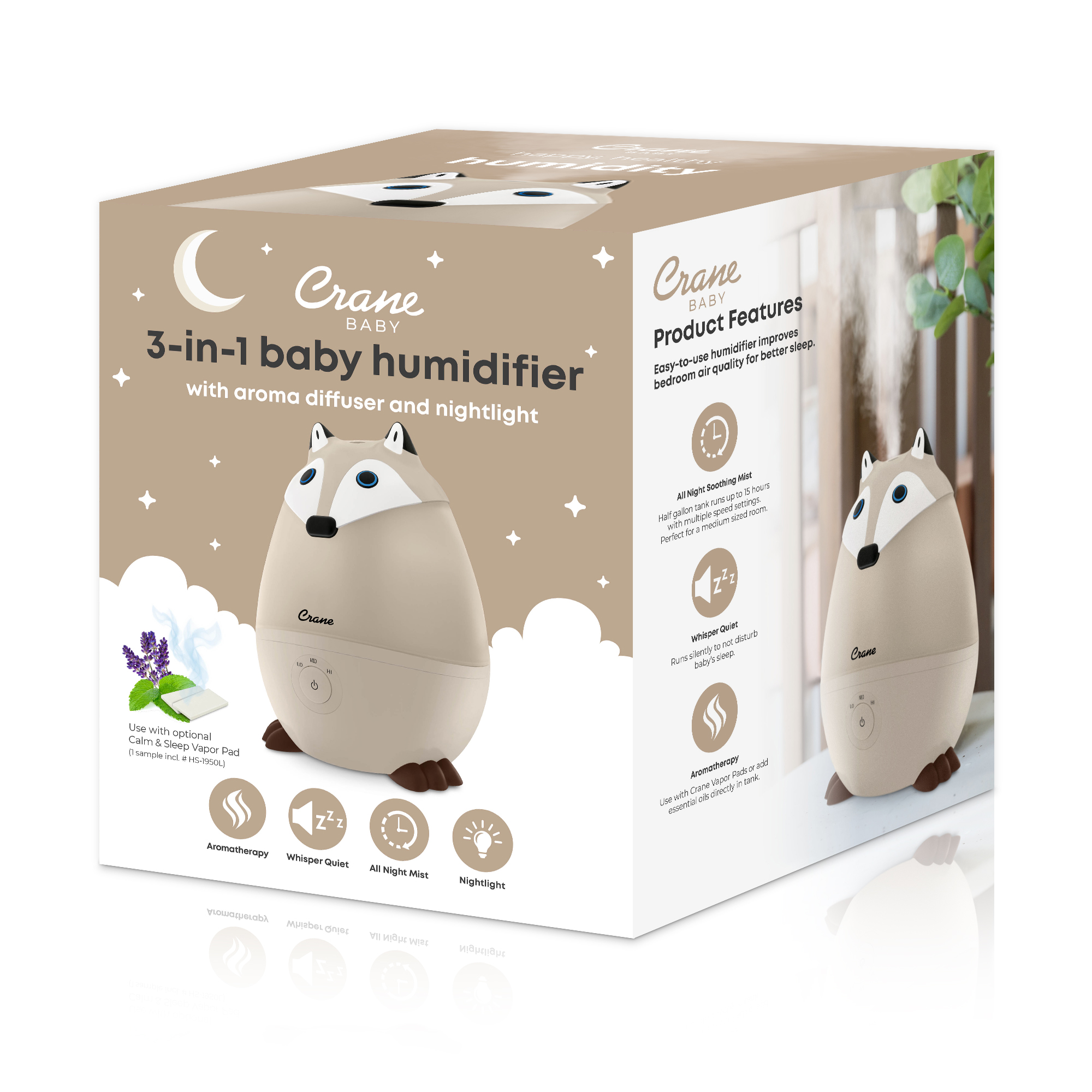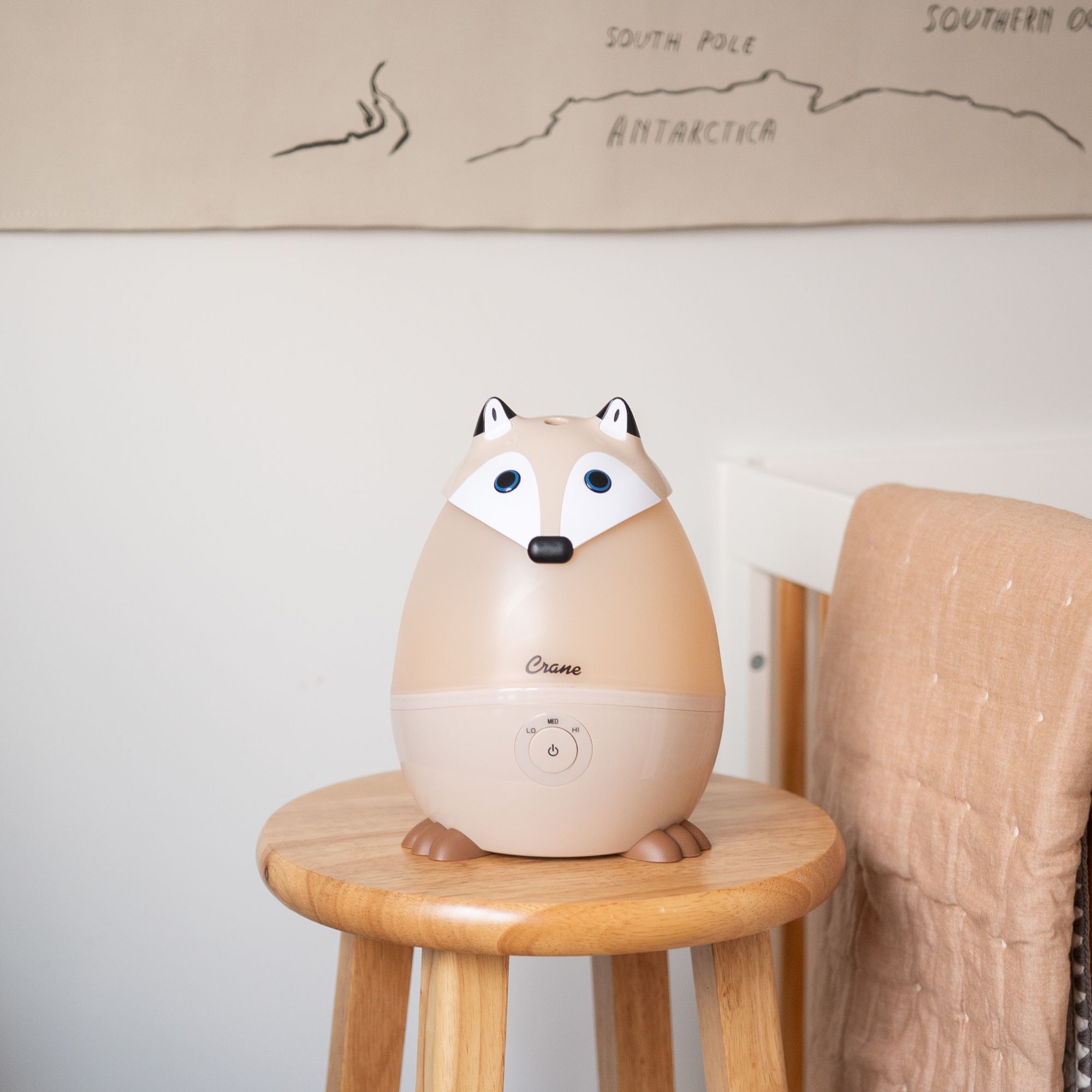 Featuring our kid-friendly Mini Fox design, this compact cool mist humidifier brings cozy moisture and comfort to your nursery, toddler room, or any small living space. Ideal for baby congestion relief, dry air, and everyday bedtime routines, the Crane Baby Mini Adorable Fox Humidifier supports your family’s wellness with its award-winning design and trusted performance. Part of your essential nursery setup, this humidifier also functions as a soothing nightlight and includes a built-in aroma tray for optional vapor pads.